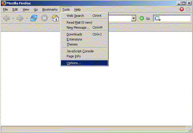 | Select "Options" from the "Tools" menu on Firefox's menu bar. |