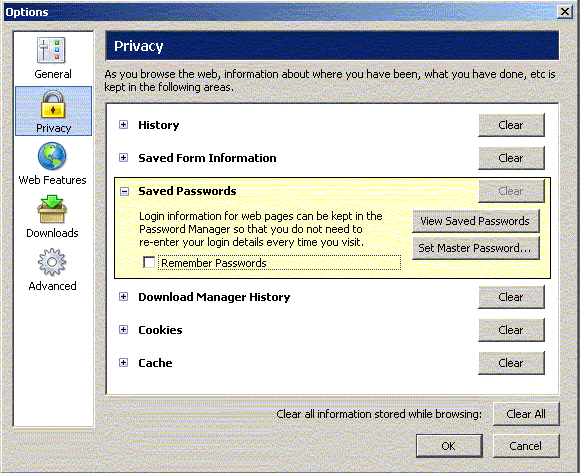 | Make sure "Remember Password" checkbox is not checked before selecting the "OK" button on the "Privacy Settings" dialog. |